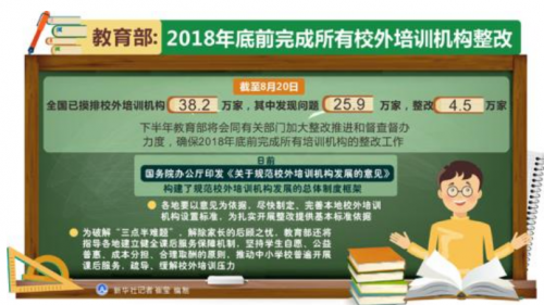 2018年2月,教育部等四部门印发《关于切实减轻中小学生课外负担 开展校外培训机构专项治理行动的通知》,对校外培训机构进行专项治理。各省相继出台了专项治理工作方案,通过综合施策和分步治理,专项治理行动取得了阶段性成果。但由于问题的长期积累,校外培训的乱象依旧存在。
