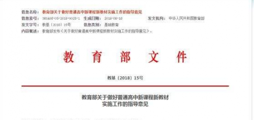 为统筹做好新课程新教材的实施工作,教育部发布《关于做好普通高中新课程新教材实施工作的指导意见》。